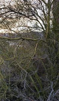 | After figuring out where the mine was located we spent a couple of hours looking for wulfenite. I wasted a lot of energy breaking rocks with no joy. Then I found a place that had fantastic wulfenite crystals! The terrain here is steep and cactus of every kind seemed to be spaced about every four inches apart! Here (at left) is the digging area and as you can see, sharp angry cactus was everywhere. In the distance just up the hill was a saguaro that must have been 25 foot tall. Swinging a sledge hammer with cactus poking me from all directions will not be something that I soon forget! The elevation at the mine is about 2,400 feet, so not too bad, but not the 500 feet oxygen level that I am used to. |
