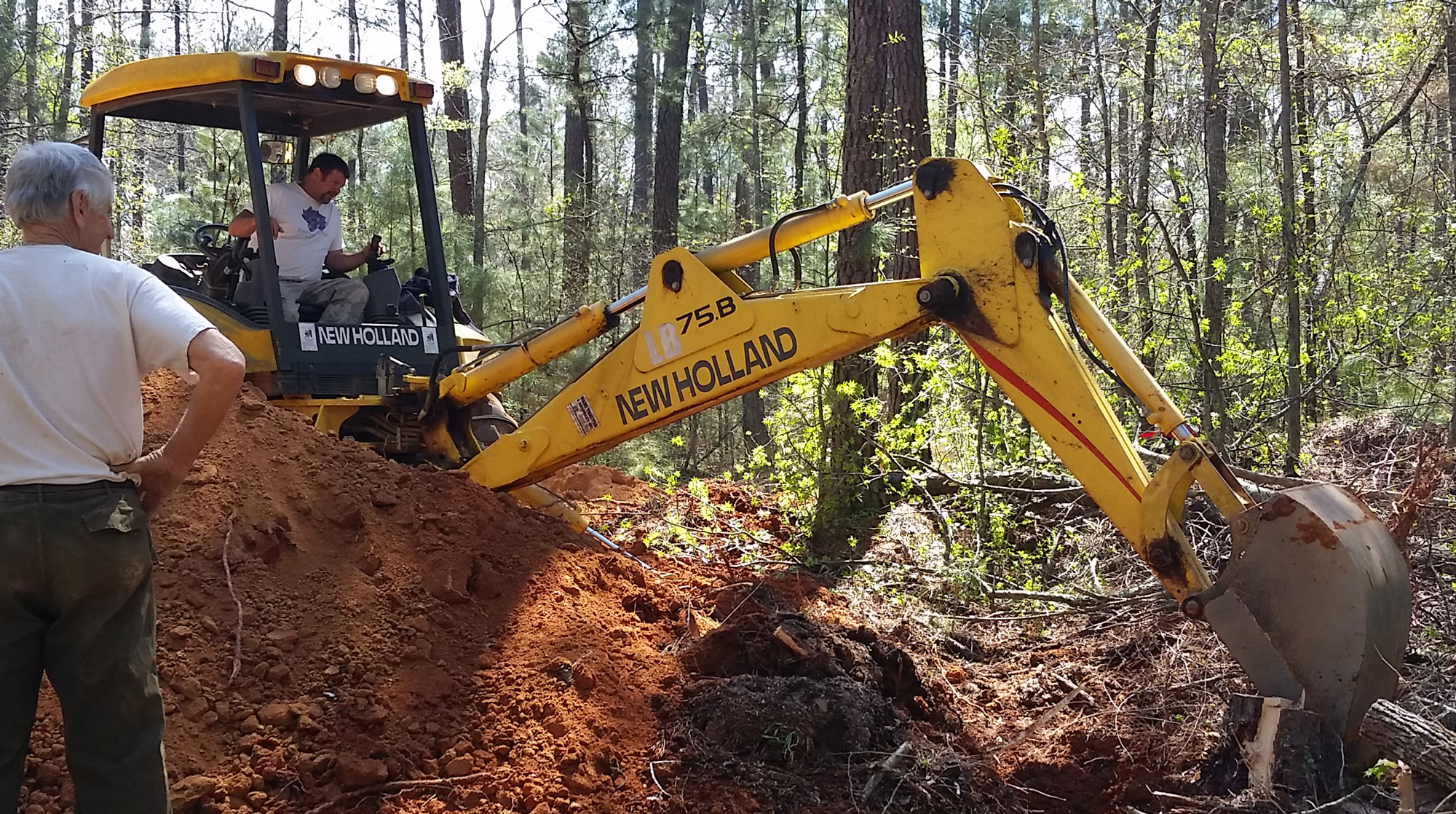 | The digging group consisted of Chester Karwoski, Myself (Rodney Moore), Donald Brockway, David Smith, Lisa Krause, Jeffrey Lennox, Tim Rawlings and Miss Katelyn Moore. The machine used to dig with was my backhoe, A New Holland LB75.B that weighs 15,000 pounds. CHECK OUT THE VIDEO OF GETTING THE CRYSTALS AND THE BACKHOE: CLICK HERE |