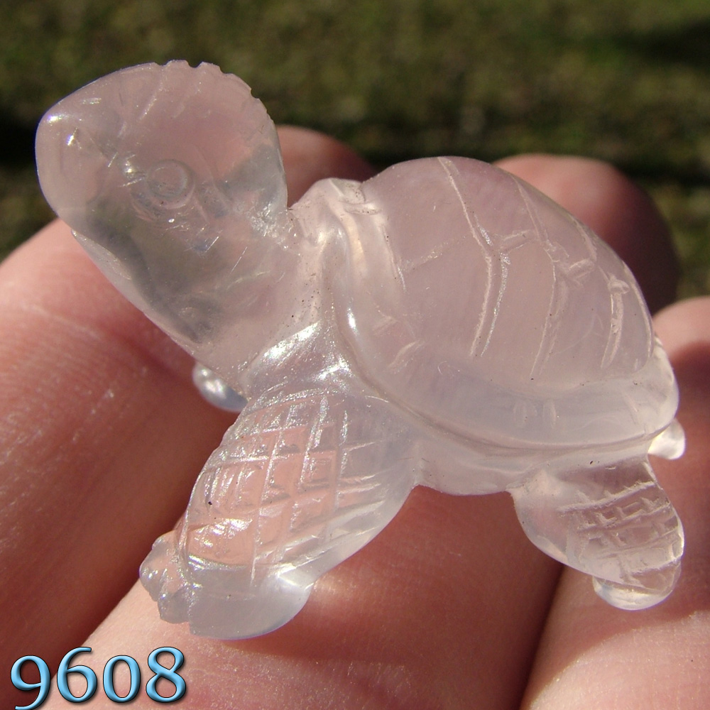 | We have had many different kinds of stone carvings out of the star rose quartz that we mined when I opened and operated the Hogg mine in Lagrange back in 2006 - 2010. Shown left and right is a turtle and a crystal skull carved out of that material. |