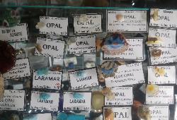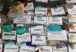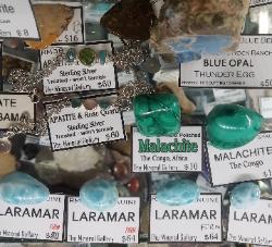 | Every year I bring back opal and larimar. I screwed up and misspelled that as "Laramar" but will correct the labels soon. Below and right we see those along with blue opal from the blue beds of Richardson's Rock Ranch. |