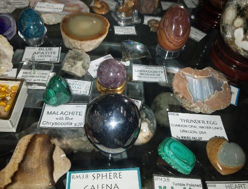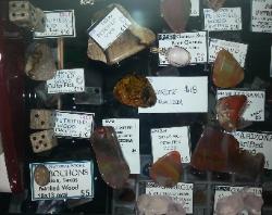| One thing that you can always expect to find at a rock shop is fluorite cubes, agate book ends, agate paperweights, and tumbled stones. And we have just about any kind that you can name, along with some that we polished our selves! We have a lot of unusual things that you probably won't see anywhere else. Like Hieroglyphic stone, for starters! |