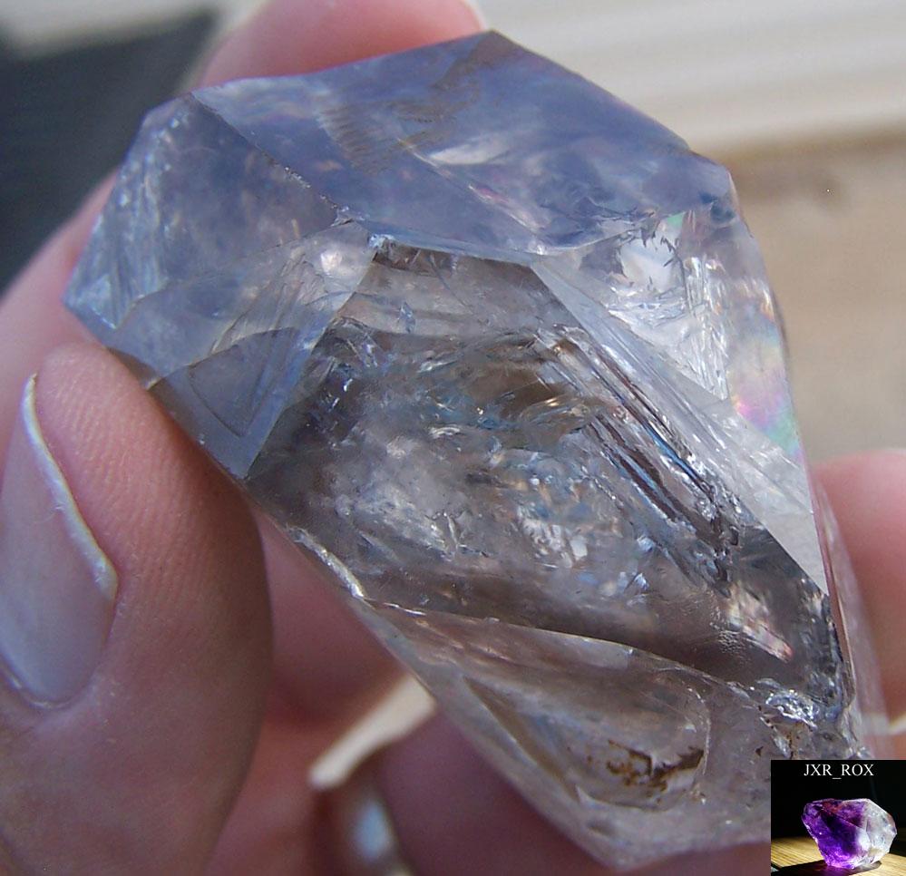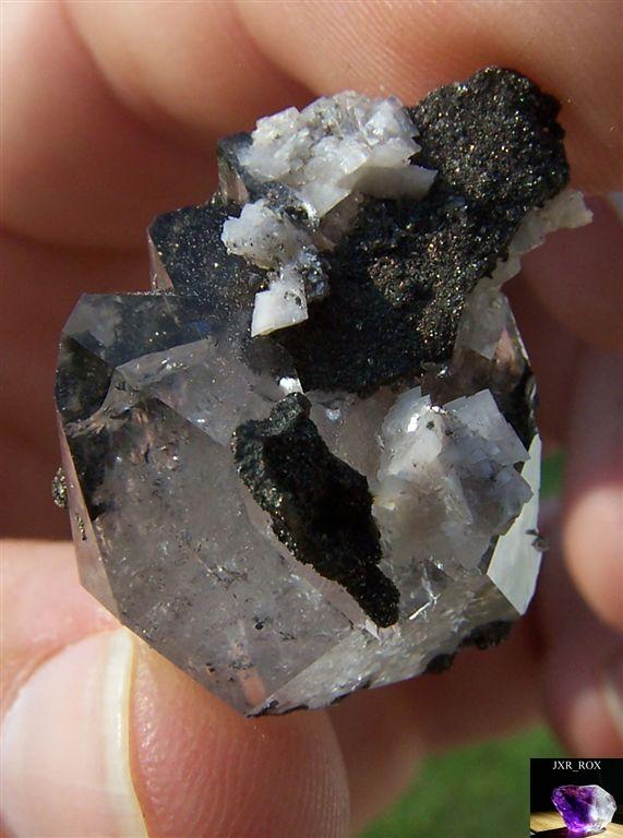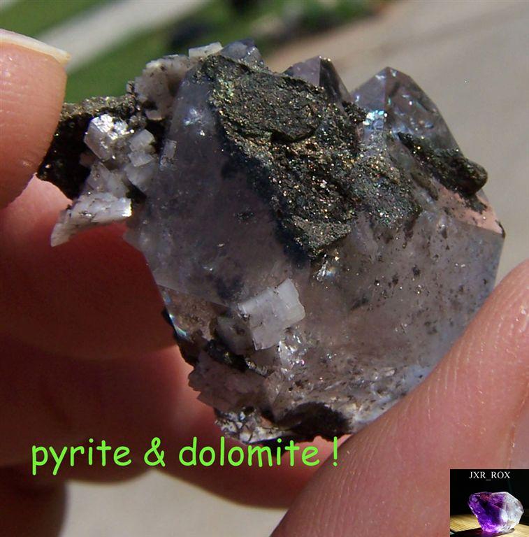 | On one of my trips to Herkimer , New York , I met with some of the local diggers and was able to purchase some Herks that has dolomite on the outside of the crystal , as well as some pyrite that was both inside and outside of the crystal. These crystals came from the Saint Johnsville Quarry . |
