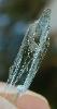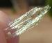 | Hiddenite has two types of terminations, with the tip or main termination having a characteristic curved shape and the lower termination being spiky and often split. The close-up image of a Hiddenite crystal below shows the lower spiky type termination. |