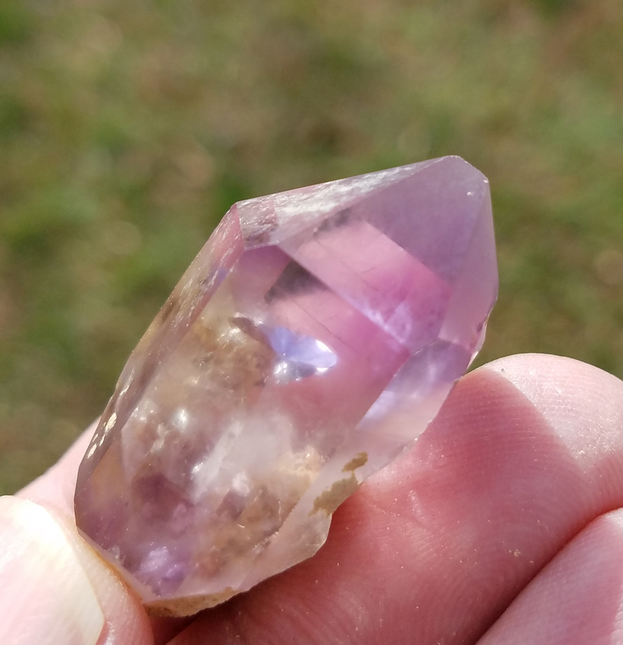 | Below are pictures of some of the crystals found at our last dig on December 16. The photos of the ones found by visitors that I took at the mine are a little blurry because it was late in the day and a bit cloudy. The photos of one that I found was taken under better lighting but they are all shown dirty just like they were found. |