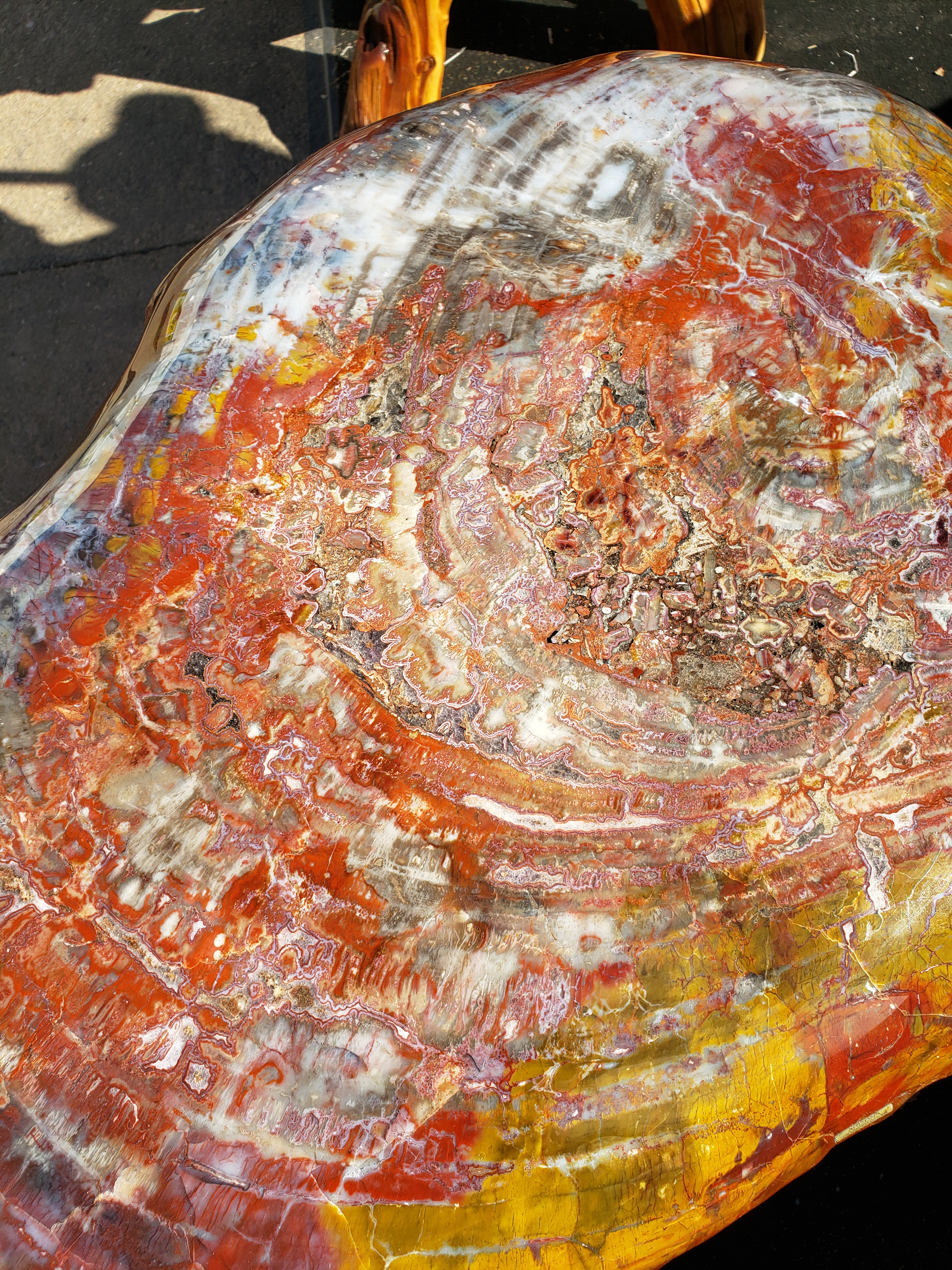 | Be sure to click to expand in order to see the incredible colors and patterns of the petrified wood. Most pieces had visible growth rings. The photo immediately below has an incredible pattern and has "fortification lines" that is not normally seen in petrified wood from this area. |