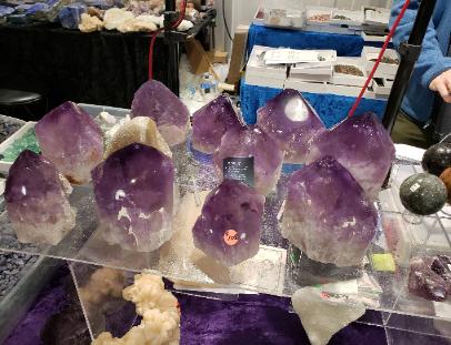 | As this page shows, the 22nd Street Gem Show is very impressive. I only took pictures of just a few things but there is pretty much anything 'rock related" that you can name for sale here. While there are some nice mineral specimens - including some unique items dug by local USA diggers - there is also tons of "Rock Shop" and "Touristy" type material such as book-ends, spheres, carved animals, necklaces, beads, etc. The show in the middle building at the 22nd Street Market is primarily geared toward wholesale buyers for their shops and online sales but you can certainly buy just one item if you are so inclined. The newer building facing 22nd street is mostly mineral specimens, including "fine" mineral specimens. That is to say, they don't have as much crap to wade through if nice minerals is your main interest. I didn't have a chance to go into the fine mineral building this year but I checked it out last year and it is very nice. The newest building of the three at the market is on the side away from 22cnd street. I haven't had a chance to even see what was inside it but it's on my list of things to do next year. |