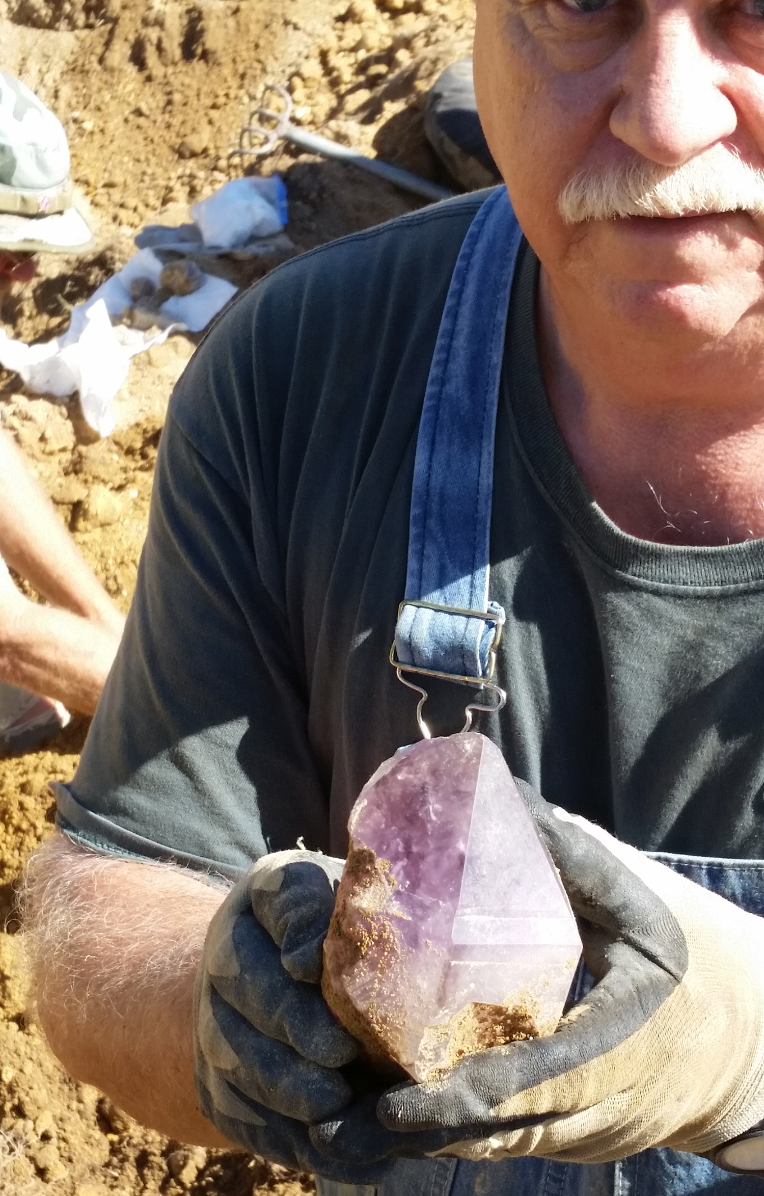 | Dig for Amethyst Crystals: Warrenton, Georgia. May 02, 2020. THERE ARE LIMITED SLOTS AVAILABLE. YOU CAN EMAIL ME TO APPLY AND REQUEST TO ATTEND THE EVENT. Registration /Application & approval required. This is on the Cedar Ridge farm near Ivy Farm. There is amethyst crystals , Quartz crystals and amethyst scepters. Some of the crystals are shiny and almost all of the crystal have a good to flawless interior. There is some light to medium facetable material here. Email me to register and apply to attend. Include your phone number in the email. (please don't email with questions about other digging dates because this page has any information about dates that I can announce). If the following link doesn't work you can get my email address in the image below. If the link works, there is no need to also use the alternate address and send two emails. There may be a delay in answering because I wear a lot of hats and am juggling a lot of things. CLICK TO EMAIL ME PHOTOS OF RECENT FINDS - January 2018 $45 per person to go thru the tailings piles as the machine brings them up . This doesn't include digging in the hole on this dig but i might be able to le t people depending on how things go. You get to keep what you find. Se e new photo link below. Please bring a release form (Release form link is below). |
